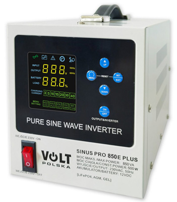• Na wyjściu generowane napięcie 230VAC o przebiegu sinusoidalnym tzw. „czysty sinus”
